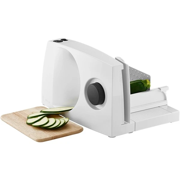 | Ausstattung | Dauerbetrieb, Momentbetrieb, Schnittstärke stufenlos einstellbar, Messerdrehzahl-Regelung, abnehmbarer Schlitten | ||