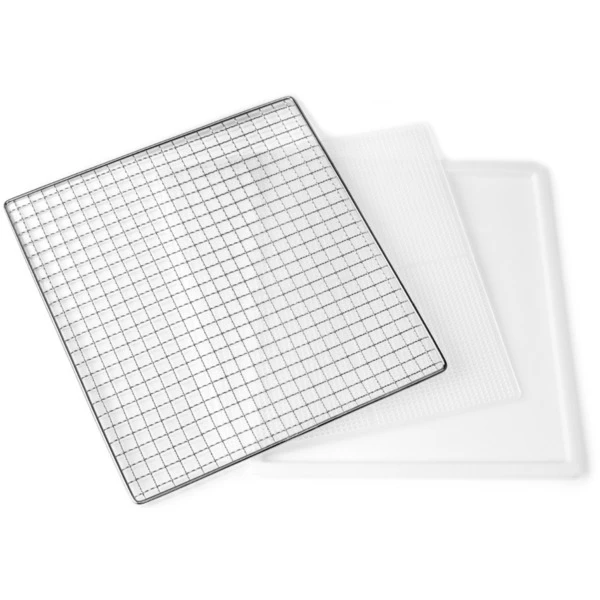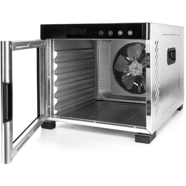 | Zubehör | vorhanden | 6 robuste Edelstahl Dörrtabletts (30 x 31,5 cm), 1 Dörrgitter und 1 Dörrmatte (BPA frei) | |