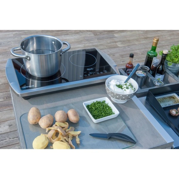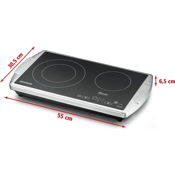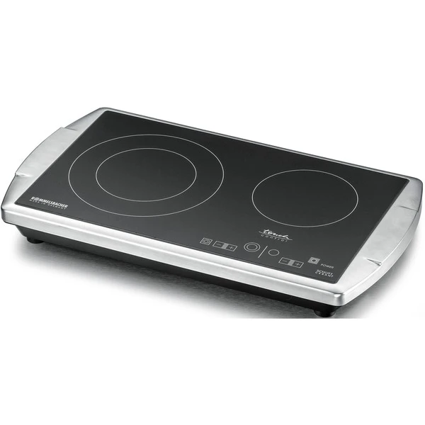 Die Zukunft hat begonnen: Nun gibt es von Rommelsbacher auch die Doppelkochplatte CT 3403/TC mit Glaskeramik Kochfeld in einem eleganten Edelstahl Gehäuse mit Softline Design. Die freistehende Kochplatte ist das Schmuckstück jeder Küche. Ideal als Zusatzgerät zum normalen Herd, perfekt für kleine Küchen, Büros und Appartements und äußerst beliebt im Catering Bereich für Buffets und Kochvorführungen. Die Ausstattung erfüllt alle Ansprüche: die HiLight® Heizzonen werden stromsparend über Touch Control in jeweils 9 Stufen geregelt. Die Zweikreis Lösung erlaubt die Zuschaltung einer extra großen Zone mit 210 mm Ø, perfekt für große Kochgefäße. Zwei Kontrolllampen und zwei Restwärmeanzeigen sind selbstverständlich. Überhitzungsschutz und Ankochautomatik sorgen für Sicherheit und besten Komfort.Art.-Nr.: 1518837