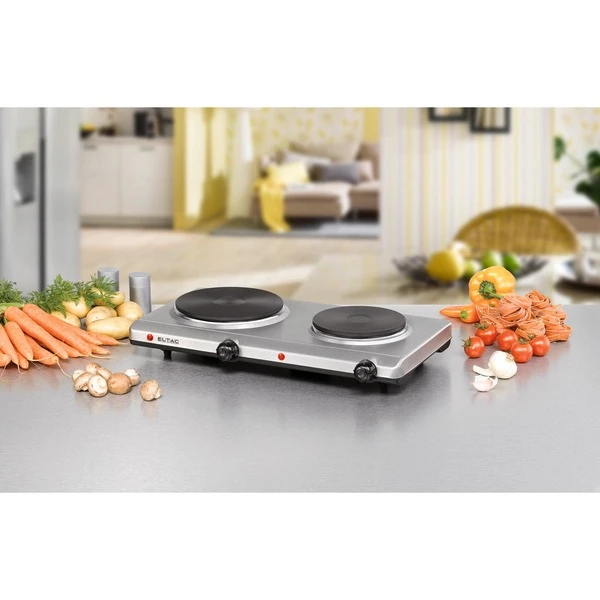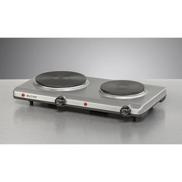 Diese praktische Doppelkochplatte in der Gehäusefarbe silbermetallic ist ein zeitloser Blickfang in jeder Küche. Die Doppelkochplatte ELTAC DK 29 zeichnet sich durch hohen Bedienkomfort aus, ist schnell einsatzbereit und vielseitig verwendbar. Zu Hause als zusätzliche Kochgelegenheit, im Singlehaushalt, in der Ferienwohnung oder im Büro können überall und auf kleinstem Raum Speisen zubereitet werden. Die Temperatur der soliden Gussheizplatten kann stufenlos geregelt werden und wird mittels Thermostat konstant auf dem eingestellten Level gehalten. Überhitzungsschutz und zwei Kontrolllampen sorgen zudem für Sicherheit im Gebrauch.Art.-Nr.: 1518927