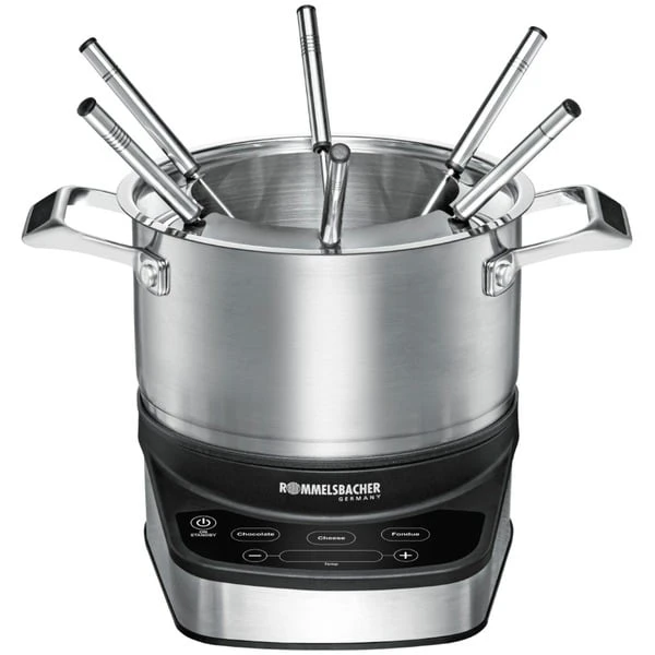 Hochwertige Technik vereint sich mit zeitgemäßem Design. Dieses attraktive Elektro Fondue Set überzeugt durch beste äußere und innere Werte. Das Fondue mit feinfühliger elektronischer Temperaturkontrolle erreicht eine sehr hohe Temperaturgenauigkeit und ist dadurch für alle Fonduearten bestens geeignet: für Fondue mit Öl und Bouillon ebenso wie für ein sensibles Käse- oder Schokoladenfondue. Drei Programme stehen zur Auswahl, deren Temperaturstufen individuell angepasst werden können. Die Bedienung über Touch Control Sensoren und die nutzerführende Beleuchtung sorgen für sicheres und einfaches Handling. Auch sonst wird Sicherheit groß geschrieben. Dezente Signaltöne, eine Betriebsdauerbegrenzung, die Restwärmeanzeige sowie die sichere Kombination von Topf und elektrischer Kochplatte lassen keine Wünsche offen. Der Komfort setzt sich auch nach dem Fonduegenuss fort: pflegeleichtes Edelstahl und eine beschichtete Heizplatte machen die Reinigung ‚danach‘ denkbar einfach. Art.-Nr.: 1699888