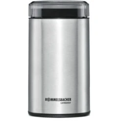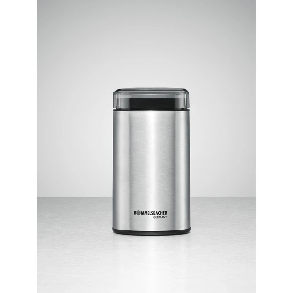 Die Kaffeemühle EKM 100 von Rommelsbacher mit kraftvollem Schlagmesser eignet sich ideal, um mit frisch gemahlenem Pulver schnell eine gute Tasse Kaffee zuzubereiten. Das Gehäuse und das Schlagwerk dieses schicken Gerätes sind aus hochwertigem Edelstahl und somit robust und pflegeleicht. Die Kaffeebohnen werden durch das 2-flügelige Messer schnell bis zum gewünschten Mahlgrad verarbeitet, die Mahldauer wird durch Drücken auf den Gehäusedeckel geregelt. Zudem lassen sich mit dieser Kaffeemühle nicht nur Kaffeebohnen, sondern auch trockene Gewürze wie z.B. Pfeffer, Koriander, Rosmarin, Kümmel oder Zucker kleinmahlen. Als weiteres Plus in puncto praktischer Handhabung findet nicht benötigtes Kabel Platz in der integrierten Kabelaufwicklung.Art.-Nr.: 1518914