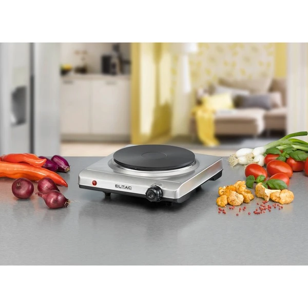 Diese praktische Kochplatte in der Gehäusefarbe silbermetallic ist ein zeitloser Blickfang in jeder Küche. Die Kochplatte ELTAC EK 19 zeichnet sich durch hohen Bedienkomfort aus, ist schnell einsatzbereit und vielseitig verwendbar. Zu Hause als zusätzliche Kochgelegenheit, im Singlehaushalt, in der Ferienwohnung oder im Büro können überall und auf kleinstem Raum Speisen zubereitet werden. Die Temperatur der soliden Gussheizplatte kann stufenlos geregelt werden und wird mittels Thermostat konstant auf dem eingestellten Level gehalten. Der Überhitzungsschutz und eine Kontrolllampe sorgen zudem für Sicherheit im Gebrauch.Art.-Nr.: 1518928