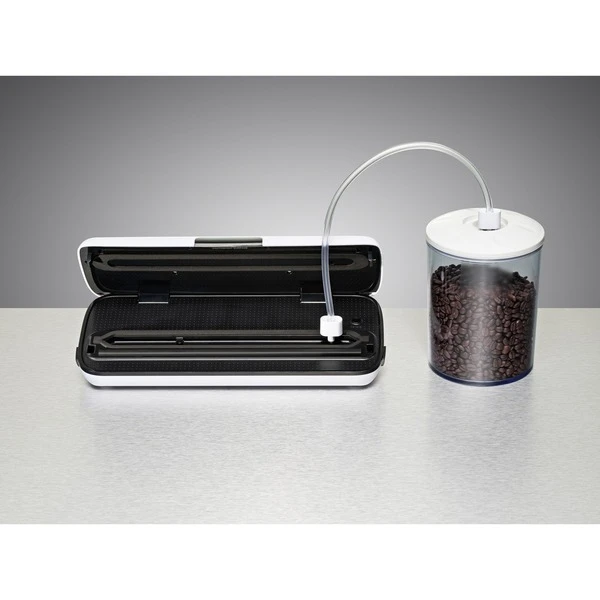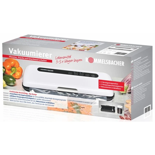 | Weitere Informationen | Schlauchanschluss zur Behälter-Vakuumierung, vollautomatisches Absaugen und Versiegeln in einem Arbeitsgang, manuelles Regulieren bei druckempfindlichen Lebensmitteln | ||