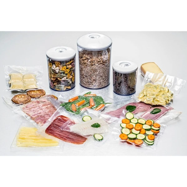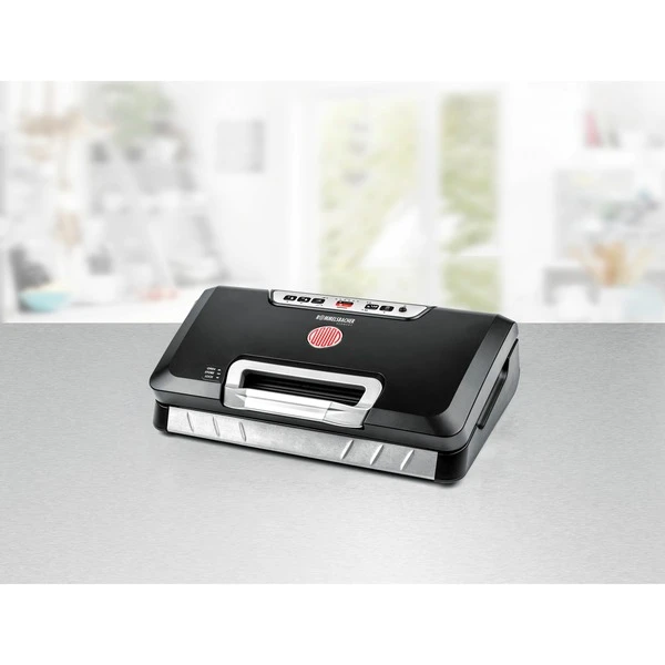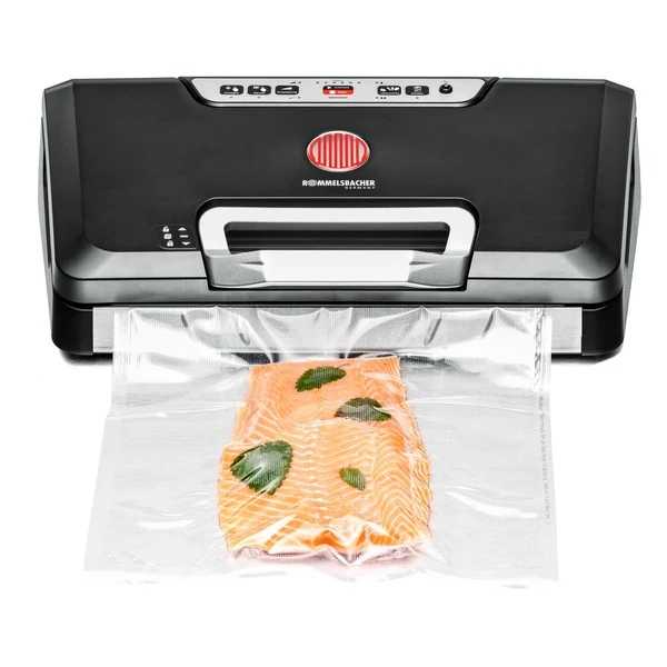 Der leistungsstarke Vakuumiergerät VAC 485 überzeugt auch den Profi. Mit dem komfortablen Handgriff lässt sich das Gerät ohne Kraftaufwand leicht öffnen und sicher schließen. Der VAC 485 ist für den Langzeitbetrieb geeignet, z. B. kann ein Großeinkauf ohne Zwischenpausen verarbeitet und die Ernte aus dem Garten zügig verpackt werden. Das integrierte Folienrollenfach mit Schneidevorrichtung hält die benötigte Spezialfolie bereit. Die leistungsstarke Pumpe saugt bis zu 97 % der Luft aus den speziellen Vakuumierbeuteln und versiegelt diese dann vollautomatisch mit einer stabilen Doppel-Naht in nur einem Arbeitsgang. Mit der in 2 Stufen einstellbaren Versiegelungsdauer und Pumpengeschwindigkeit kann der Vakuumiervorgang individuell an die zu verarbeitenden Lebensmittel angepasst werden. Für besonders druckempfindliche Nahrungsmittel steht eine manuelle Absaug- und Versiegelungsfunktion zur Verfügung. Besonders praktisch ist das beleuchtete Sichtfenster, hier kann die korrekte Positionierung des Beutels im Gerät überprüft werden. Mit der Funktion „Behälter vakuumieren“ können selbst sensible und flüssige Lebensmittel in speziellen Vakuumiergefäßen vakuumverpackt und lange frisch gehalten werden. Durch Vakuumieren wird die Haltbarkeit von Lebensmitteln um das 3 bis 5-fache verlängert, darum sollte dieses praktische Gerät in keinem Haushalt fehlen! Art.-Nr.: 1519540
