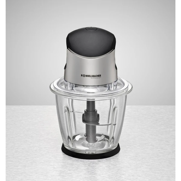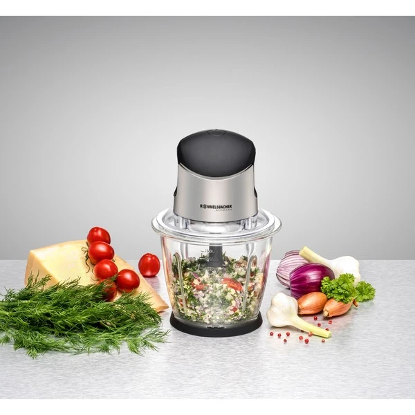 Mit dem hochwertigen Multi Zerkleinerer MZ 500 von Rommelsbacher macht Küchenarbeit Spaß. Hacken, Schneiden, Pürieren – mit einem leichten Druck auf die Einschalttaste verarbeitet das Gerät Kräuter, Zwiebeln, Käse, Fleisch, Obst, Beeren, Nüsse (ohne Schale), Kartoffeln, Gemüse, Rohkost & mehr. Im Handumdrehen entstehen gesunde, vitaminreiche Rohkostsalate, cremige Brotaufstriche, fantasievolle Dips und Pesto. Auch Gewürzmischungen und Gewürzsalze lassen sich hervorragend darin herstellen. Das 4-flügelige Messer aus rostfreiem Edelstahl arbeitet sehr effizient und überzeugt durch perfekte Ergebnisse. Der klare Glasbehälter ist äußerst robust, lebensmittelneutral, hygienisch und sehr leicht zu reinigen. Er hat ein Fassungsvermögen von 1,5 Litern. Ein kraftvoller Motor meistert alle Anforderungen leise und vibrationsarm und das integrierte Sicherheitssystem schützt vor unabsichtlicher Aktivierung. Zur leichten Reinigung können alle abnehmbaren Teile in die Spülmaschine. Art.-Nr.: 1519347