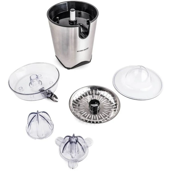 Frisch gepresst schmecken Säfte am besten. Mit der eleganten Zitruspresse ZP 60/E aus hochwertigem Edelstahl presst man im Handumdrehen den letzten Tropfen aus Orangen, Zitronen und Grapefruits, dank der zwei unterschiedlichen Saftkegel. Es genügt leichter Druck, den Rest übernimmt der leistungsstarke Motor. Ideal für den Vitaminkick zwischendurch. Der Saft fließt über eine klappbare Auslauftülle direkt in ein Glas, der Nachtropfstopp sorgt dafür, dass kein Tropfen verloren geht. Das Edelstahlsieb ist abnehmbar und kann zusammen mit Presskegeln, Saftauffangbehälter und Staubschutzdeckel in der Spülmaschine gereinigt werden. Art.-Nr.: 1519552
