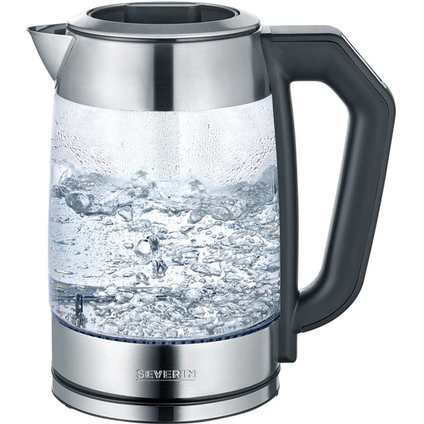 Der Digital Glas Tee- und Wasserkocher WK 3477 von Severin fasst bis zu 1,7 Liter Wasser und hat eine überzeugende Leistung von 2.200 Watt. Er bietet in 5°C-Schritten einstellbare Temperaturstufen von 40°C bis 100°C, und auf dem LCD-Display wird die Temperatur während des Kochens gradgenau angezeigt. Der feinfühlige integrierte Temperatursensor sorgt für höchste Temperaturgenauigkeit. Die „Quick-Boil Funktion“ ermöglicht die Auswahl von 100°C per einfachem Knopfdruck. Eine separate Warmhaltefunktion zur 30 minütigen Temperaturspeicherung hält den Tee schön warm, und der feinmaschige Teefilter aus Edelstahl lässt sich mit dem praktischen Griff sicher entnehmen. Dank dem 360º central-cordless-system ist der Wasserbehälter aus jeder Richtung auf den Gerätesockel aufsetzbar. Mit Dampfstopp-Automatik, Überhitzungsschutz und rutschfesten Gummifüßen ist der WK 3477 auch in Bezug auf Sicherheit eine gute Wahl. Der Wasserbehälter lässt sich dank verdeckter Heizschlange (Abdeckung aus Edelstahl) und abnehmbarem Deckel mit großer Öffnung leicht reinigen, und das Anti-Kalk-Sieb sorgt für sauberes Wasser beim Ausgießen.Art.-Nr.: 1340212