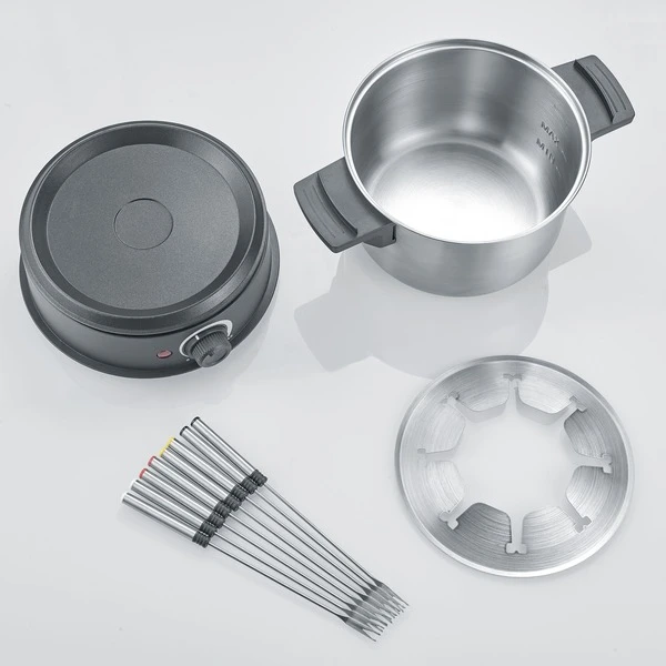 Ob traditionell an Weihnachten, Silvester, Geburtstagen oder einfach für zwischendurch, mit dem FO 2470 Fondue lässt sich gemeinsame Zeit mit Familie und Freunden genießen, während Fleisch, Fisch, Brot oder Gemüse im Edelstahltopf brutzeln. Zur optimalen Unterscheidung kann jeder Gast eine der farblich markierten Fondue-Gabeln zum Herausnehmen der Köstlichkeiten auswählen. Dank der stufenlosen Temperatureinstellung und dem abnehmbaren Edelstahltopf mit min./max. Markierung, ist dieses Fondue Set für die unterschiedliche Fondue-Arten geeignet. Ob Käse-, Schokoladen-, Wein- oder das klassische Öl-Fondue, bei den vielfältigen Möglichkeiten kommt jeder Gast auf seine Kosten. Der Spritzschutz mit Gabelhalter kann abgenommen werden und für eine einfache Reinigung, sind alle abnehmbaren Teile spülmaschinengeeignet.