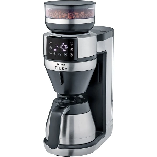 Dank des Severin KA 4851 Filterkaffee-Vollautomat FILKA und vollautomatischem „Cup Control“ ist Tassengenaues Abmessen von Wasser jetzt Vergangenheit. Die FILKA bezieht immer genau so viel Wasser, wie für die gewünschte Menge Kaffee benötigt wird. Der KA 4851 bietet Flexibilität und individuellen Kaffeegenuss. Die FILKA ist vielseitig dank innovativer 5-in-1 Kompatibilität und individuell anpassbarer Tassenabstellfläche: Glaskanne (enthalten), Thermokanne, kleine Tasse, großer Becher oder Thermobecher „To go“. Vollautomatisch einstellbare Kaffeemenge (100 – 350 ml) bei Tassenbezug. Das sorgt für Kaffeegenuss in Premium-Qualität – inklusive nachhaltigem Goldton-Filter. Durch die optimale Brühtemperatur (bis zu 96° C) und Vorbrühfunktion gelingt frisch gemahlener, heißer und kräftiger Kaffee. Der spülmaschinengeeignetem Goldton-Filter dient als Alternative zum klassischen Papierfilter. Die KA 4851 bietet Bedienkomfort auf einem weiteren Niveau: Intuitiv, einfach und hygienisch. Der abnehmbare Wassertank ermöglicht ein komfortables Befüllen und durch den entnehmbaren Bohnenbehälter lässt sich das Mahlwerk unkompliziert reinigen. Auch die Pulverausgabe lässt sich automatisch öffnen und somit leicht reinigen (inklusive Wasserfilter). Dank hochwertigem und platzsparenden Ultra-Slim-Design mit nur 17 cm Breite findet die FILKA überall einen Platz.Art.-Nr.: 1863254