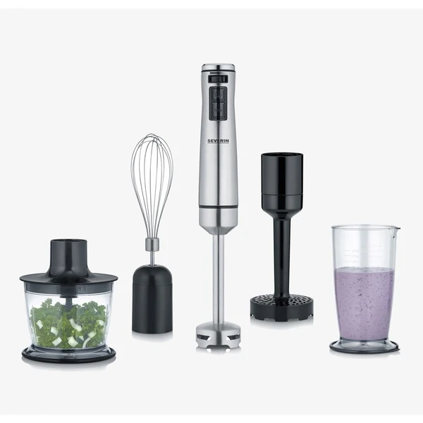 Der Stabmixer Severin SM 3774 ist mit 1.000 Watt leistungsstark und bietet feine Pürierergebnisse im Handumdrehen. Das ergonomische Design mit abnehmbarem Edelstahl-Rührstab bietet eine einfache Reinigung und komfortables Arbeiten. Im Lieferumfang ist ein umfangreiches Zubehör-Set enthalten.Art.-Nr.: 1903762