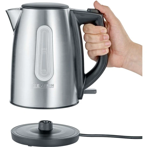 Der Severin WK 3469 ist ein leistungsstarker, komfortabler Wasserkocher mit 360° Basisstation und Deckelöffnung per Knopfdruck. Durch die bequeme Bedienung lässt sich der Wasserkocher WK 3469 nur mit einer Hand bedienen. Das 1 Liter Wasser fassende Gerät ist mit einem klappbaren Deckel, einer Dampfstopp-Automatik, rutschfesten Gummifüßen und einem Überhitzungsschutz ausgestattet. Dies macht die Handhabung des WK 3469 nicht nur einfach sondern sicher. Art.-Nr.: 1387167