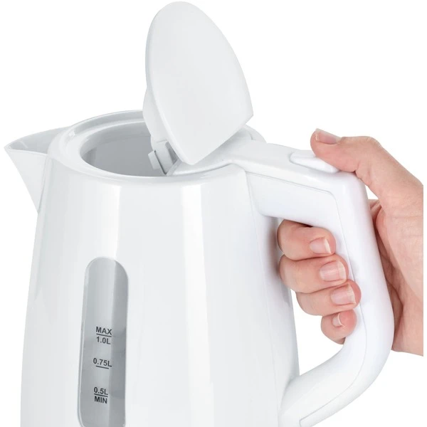 Der Severin WK 3411 ist ein leistungsstarker, kompakter Wasserkocher mit 360° Basisstation und Deckelöffnung per Knopfdruck. Durch die bequeme Bedienung lässt sich der Wasserkocher WK 3411 nur mit einer Hand bedienen. Das 1 Liter Wasser fassende Gerät ist mit einem klappbaren Deckel, einer Dampfstopp-Automatik, rutschfesten Gummifüßen und einem Überhitzungsschutz ausgestattet. Dies macht die Handhabung des WK 3411 nicht nur einfach sondern sicher.Art.-Nr.: 1741060