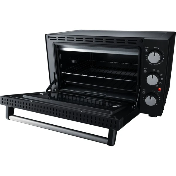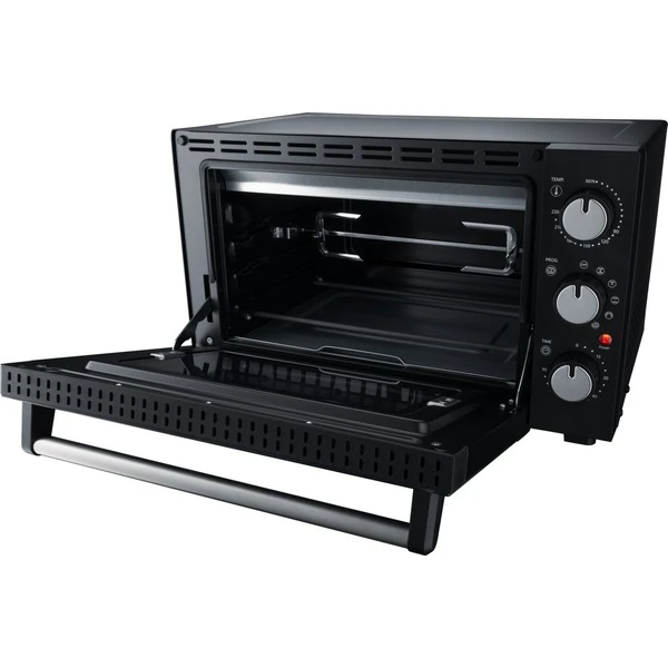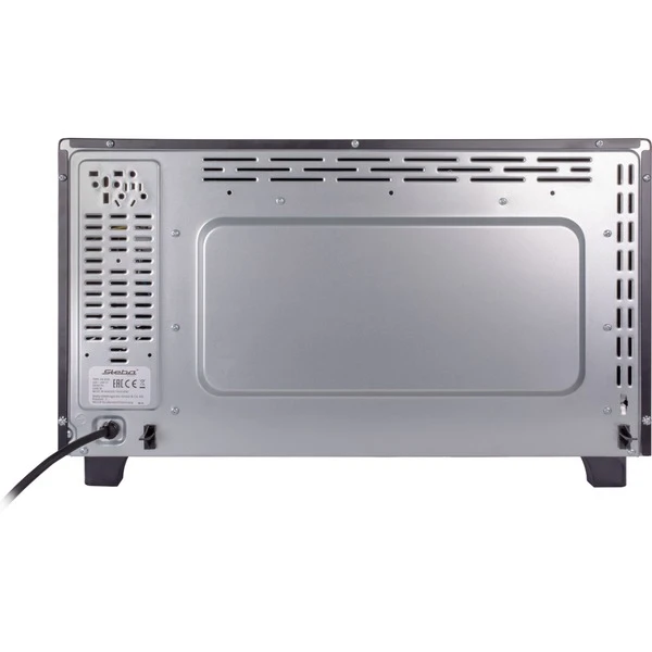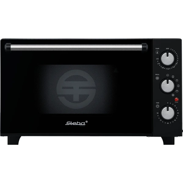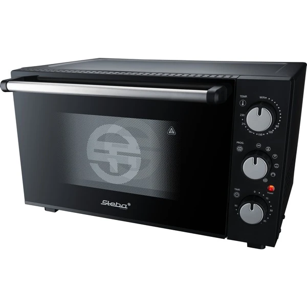 Der Steba Grillbackofen KB M30 mit Ober-/Unterhitze und zuschaltbarer Umluft eignet sich hervorragend zum Backen von Pizza. Dank des 30 l Innenraums und des großen Drehspießes, der Platz für 2 Hähnchen bietet, gelingen auch Grillhähnchen oder Spießbraten. Die Bedienung erfolgt über 3 Drehregler. Ein 90 Minuten Timer, Innenraumbeleuchtung und eine Doppelglastür runden die Ausstattung ab. Die wirksame Gehäuseisolation sorgt für eine geringe Oberflächentemperatur und dient der Energieeinsparung. Der antihaftbeschichtete Innenraum, das antihaftbeschichtete Backblech sowie das Krümelblech erleichtern die Reinigung.
