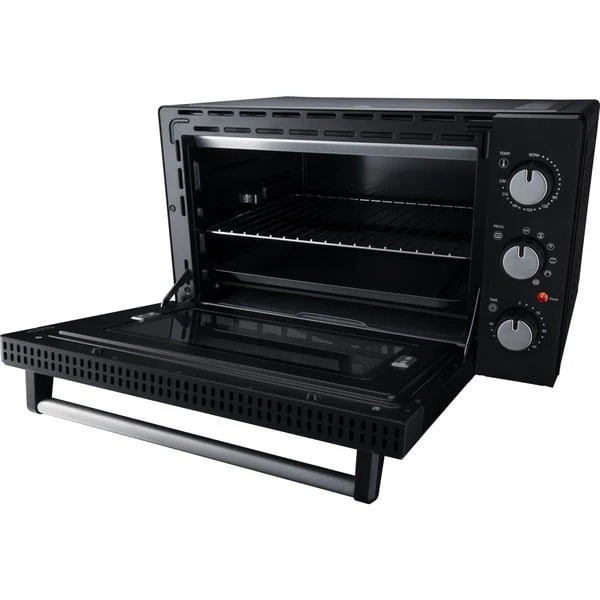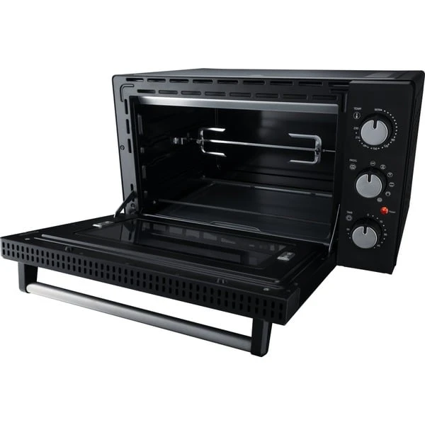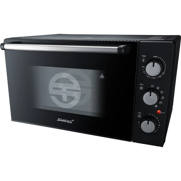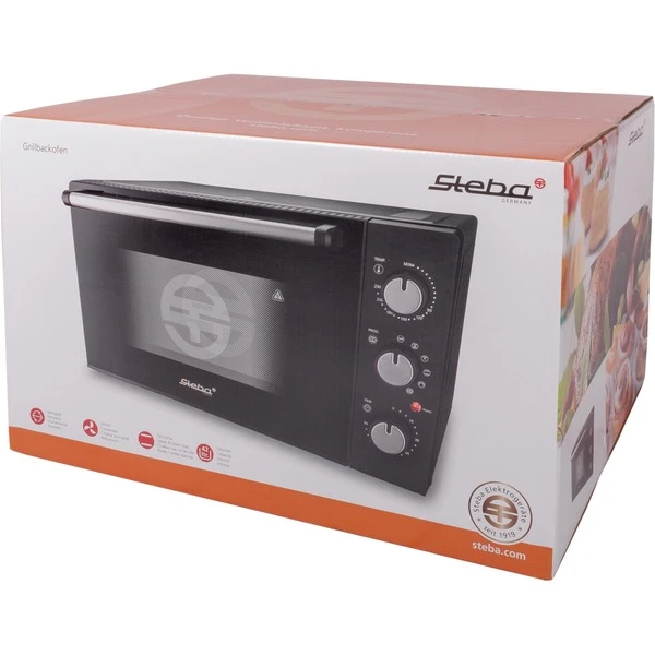 Der Steba Grillbackofen KB M42 mit Ober-/Unterhitze und zuschaltbarer Umluft eignet sich hervorragend zum Backen von Pizza. Dank des 42 l Innenraums und des großen Drehspießes, der Platz für 2 Hähnchen bietet, gelingen auch Grillhähnchen oder Spießbraten. Die Bedienung erfolgt über 3 Drehregler. Ein 90 Minuten Timer, Innenraumbeleuchtung und eine Doppelglastüre runden die Ausstattung ab. Die wirksame Gehäuseisolation sorgt für eine geringe Oberflächentemperatur und dient der Energieeinsparung. Der antihaftbeschichtete Innenraum, das antihaftbeschichtete Backblech und das Krümelblech erleichtern die Reinigung.Art.-Nr.: 1818173