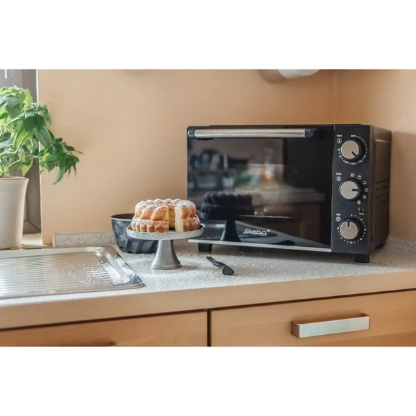 Der Steba Grillbackofen KB M60 mit Ober-/Unterhitze und zuschaltbarer Umluft eignet sich hervorragend zum Backen von Pizza. Der XXL-Garraum mit ca. 60 l Volumen bietet Platz für eine Familienpizza mit ca. 38 x 29 cm oder einen großen Bräter. Dank des großen Drehspießes, der Platz für 2 Hähnchen bietet, gelingen auch Grillhähnchen oder Spießbraten. Die Bedienung erfolgt über 3 Drehregler. Ein 90 Minuten Timer, Innenraumbeleuchtung und eine Doppelglastüre runden die Ausstattung ab. Die wirksame Gehäuseisolation sorgt für eine geringe Oberflächentemperatur und dient der Energieeinsparung. Der antihaftbeschichtete Innenraum, das antihaftbeschichtete Backblech und das Krümelblech erleichtern die Reinigung.Art.-Nr.: 1818172