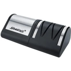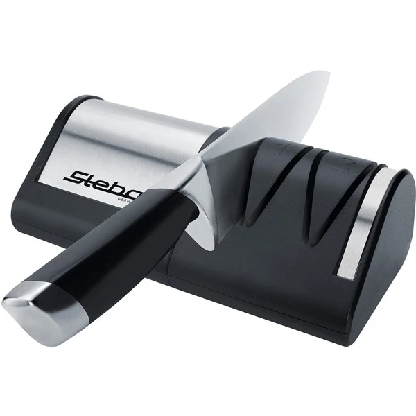 Der elektrische Messerschärfer KS 1 von Steba ist mit seinen Diamant-Schleifscheiben für alle Arten von Messern geeignet. Für den idealen Schleifwinkel sorgt die Präzisionsklingenführung und der 2-Phasen Schliff perfektioniert die Ergebnisse. Die Schleifeinheit des KS 1 ist austauschbar und die Gummifüße sorgen für einen sicheren Stand.