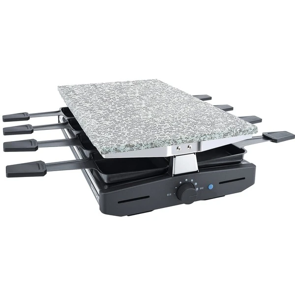 Das Steba Stein-Raclette RC 48 überzeugt mit einer großen Natursteingrillplatte für Kurzgebratenes oben und acht antihaft-beschichteten Pfännchen darunter. Mit einer Leistung von 1200 Watt lässt sich in geselliger Runde das ein oder andere Schmankerl einfach und schnell brutzeln. Das Design mit stufenlosem Temperaturregler, Kontrollleuchte und rutschfeste Füßen machen das Stein-Raclette RC 48 in der Bedienung einfach und sicher.Art.-Nr.: 934766