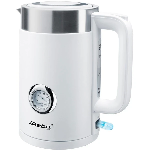 Der Wasserkocher WK 10 Bianco in modernem Design ist mit einem doppelwandigem Gehäuse mit Thermofunktion und einem Fassungsvermögen von 1,7 l ausgestattet. Für ungetrübten Genuss sorgt ein entnehmbarer Partikelfilter und eine Temperaturanzeige bis 100°C. Für weiteren Komfort sorgt die leichte Deckelöffnung per Knopfdruck und der 360° Sockel mit Kabelaufwicklung. Die Reinigung ist durch das verdeckte Heizelement ein Kinderspiel. Für Sicherheit sorgen eine Abschaltautomatik, der beleuchtete Ein-/Ausschalter und der Trockengehschutz.