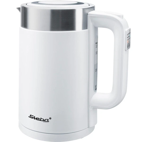 Der Wasserkocher WK 11 Bianco in modernem Design ist mit einem doppelwandigem Gehäuse mit Thermofunktion und einem Fassungsvermögen von 1,7 l ausgestattet. Für ungetrübten Genuss sorgt ein entnehmbarer Partikelfilter. Die Temperatur lässt sich von 50°C bis 100°C, in fünf Stufen, einstellen. Für weiteren Komfort sorgt die leichte Deckelöffnung per Knopfdruck und der 360° Sockel mit Kabelaufwicklung. Die Reinigung ist durch das verdeckte Heizelement ein Kinderspiel. Für Sicherheit sorgen die Betriebskontrollleuchte, Abschaltautomatik und der Trockengehschutz.Art.-Nr.: 1574859