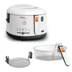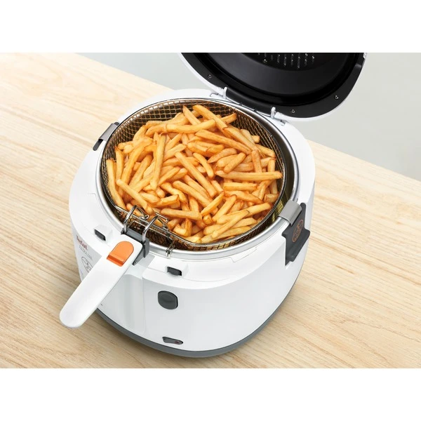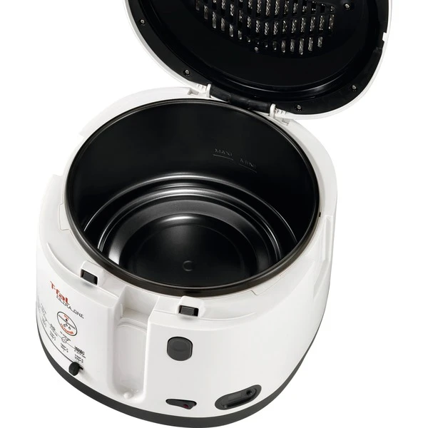 Die Tefal Fritteuse One Filtra FF 1631 ist eine besonders praktische Fritteuse: Frittierkorb und Deckel sind herausnehmbar und sogar spülmaschinengeeignet. Die Temperatur des Frittierfettes lässt sich außen am wärmeisolierten Gehäuse über ein Schieberegler einstellen. Das Besondere an der Fritteuse One Filtra FF 1631 ist das „Clean-Oil-System“: Das extra feine Auffangsieb filtert Frittierreste aus dem Öl. Während des Frittierens befindet sich das Auffangsieb am Boden des Ölbades und kann nach dem Abkühlen des Öls sicher und bequem am Griff herausgehoben werden. Sauberes Öl ohne verbrannte Frittierreste für: weniger Geruch, besseren Geschmack und gesünderes Frittieren.Art.-Nr.: 1038523