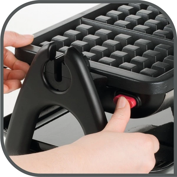 Das King Size Waffeleisen WM756D von Tefal ist ein semiprofessionelles Waffeleisen mit Drehgriff für ein einfaches Wenden und köstliche Ergebnisse. So lassen sich ganz leicht zwei echte belgische Waffeln gleichzeitig zubereiten. Dank der optimalen Teigverteilung erhält man perfekte Waffeln, außen knusprig und innen weich. Dank des drehbaren Backraums lässt sich der Teig optimal verteilen, mit dem Thermostat kann man fünf verschiedene Backtemperaturen einstellen. Die praktische Kontrollleuchte zeigt an, sobald die Platten heiß genug sind, um mit dem Backen zu beginnen. Zur Reinigung lassen sich die antihaftversiegelten Platten einfach entnehmen.Art.-Nr.: 1352283