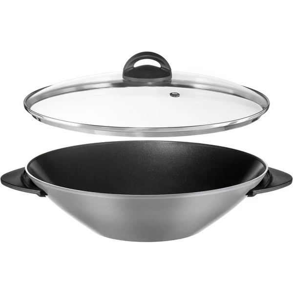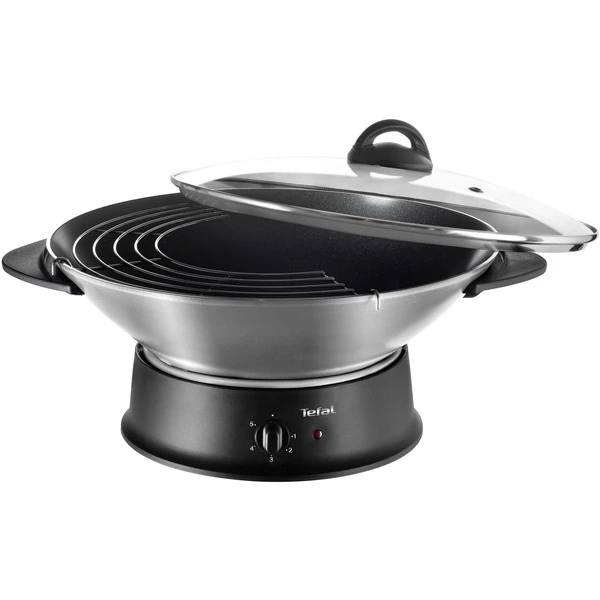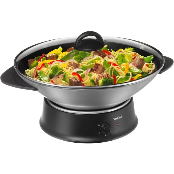 Mit dem Tefal WOK 3000.10 wird zuhause asiatisch Kochen von nun an leicht gemacht. Auf die abnehmbare Pfanne mit flachem Boden und Thermo-Spot kann man den Glasdeckel mit Edelstahlring und wärmeisolierten Griffen sowie Deckelknopf legen. Dank der Antihaftbeschichtung innen wie außen ist der WOK 3000.10 leicht zu reinigen. Mit dem regelbaren Thermostat kann man das Essen scharf Anbraten, Schmoren oder auch einfach nur Warmhalten. Ein Dampf-/Abtropfgitter ermöglicht dessen Ablage und das Platz machen für nachfolgendes Kochgut.Art.-Nr.: 951696