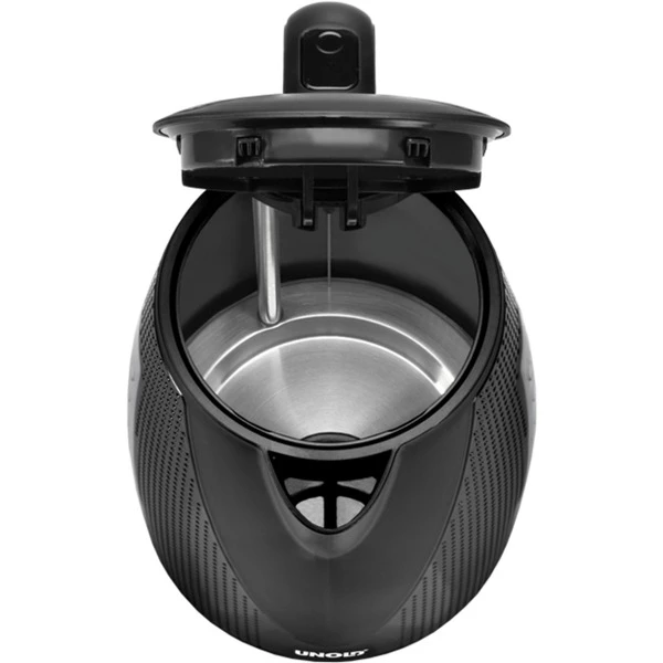 Der Unold Der Blitzkocher Golf 18555 besticht nicht nur durch sein schickes Design sondern ist ein leistungsstarker, abnehmbarer Wasserkocher mit 360°-Sockel. Der Deckel des 1,7 Liter Wasser fassenden Geräts öffnet sich per Knopfdruck. Der Blitzkocher 18555 verfügt über einen Ein-/Aus-Schalter mit Kontrollleuchte, einen Sicherheitsdeckel mit Verriegelung, Trockengehschutz und Kochstopp mit Abschaltautomatik.