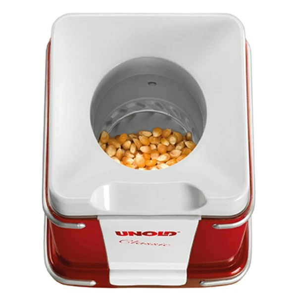 Der Unold Popcornmaker 48525 Classic ist ein Multi-Talent für große Popcorn-Mengen. Jeder hört es gerne, das viel versprechende Knacken der aufplatzenden Maiskörner. Damit die Zubereitung von Popcorn auch zuhause in großen Mengen gelingt, gibt es den Popcornmaker Classic. Bei dem Gerät ist keine Zugabe von Öl erforderlich. Art.-Nr.: 1098343